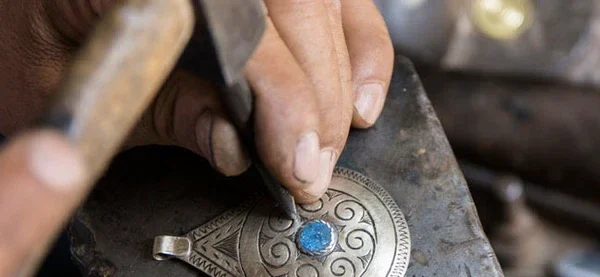 Travaillés en petites séries, nos bijoux allient argent massif, motifs amazighs, pierres naturelles et finitions minutieuses, dans la pure tradition des ateliers du Maroc.