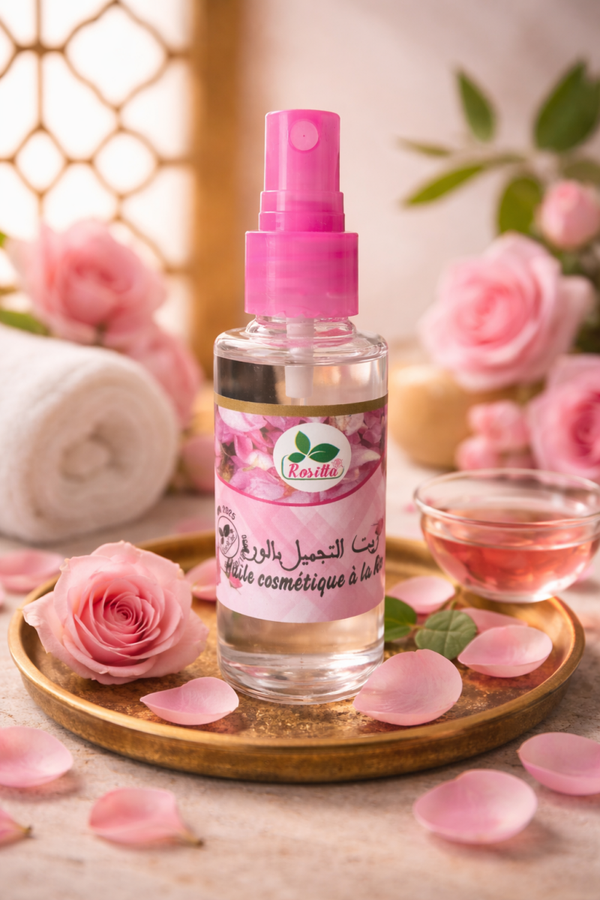 Inspirée des rituels de beauté traditionnels marocains, elle associe le parfum délicat de la rose à une texture nourrissante et soyeuse. Contrairement à une eau florale, cette huile offre un soin plus riche, idéal pour apporter confort, éclat et douceur à la peau.