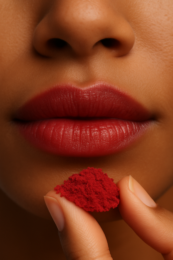Plongez dans le secret de beauté des femmes berbères avec notre Akkar Fassi, un rouge à lèvres 100 % naturel aux reflets carmin, né du cœur des fleurs du Maroc.