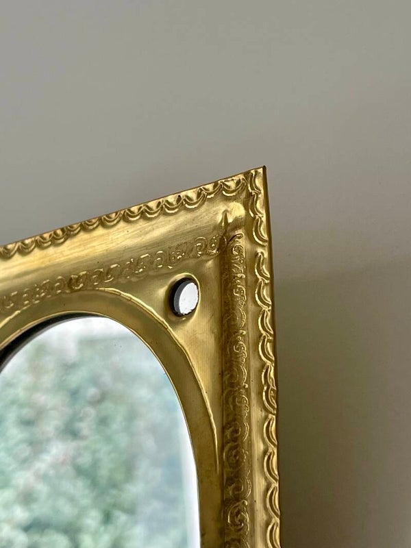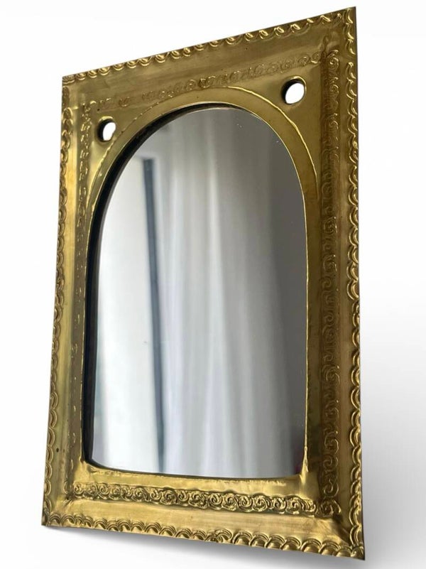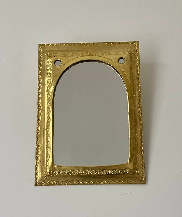 Miroir artisanal portable – Cadre doré martelé (style oriental)