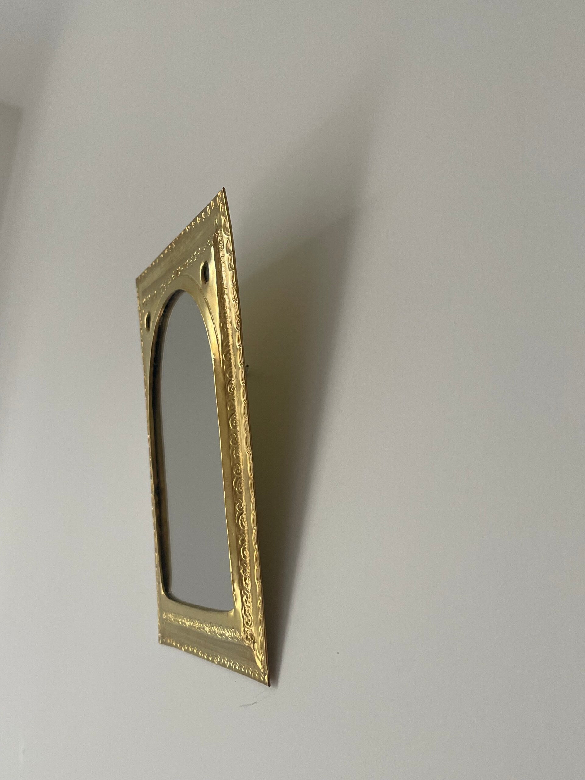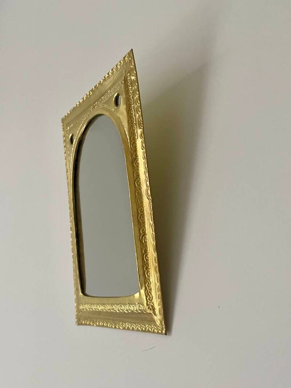 Dans les ateliers traditionnels du Maroc, les artisans façonnent avec patience de petits miroirs en artisanal. Le métal est d’abord découpé puis martelé à la main, avant d’être ciselé de motifs floraux ou géométriques inspirés de l’art arabo-andalou. Chaque détail est gravé avec minutie, donnant au laiton son éclat doré et raffiné.
