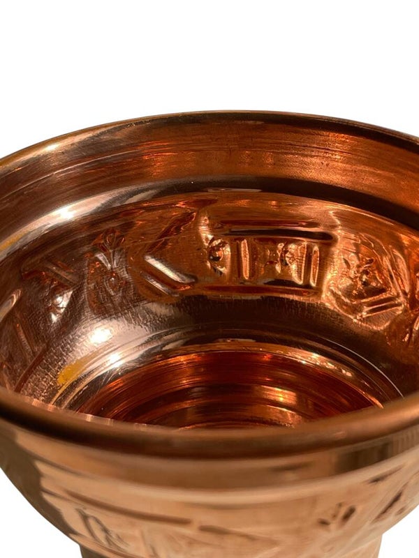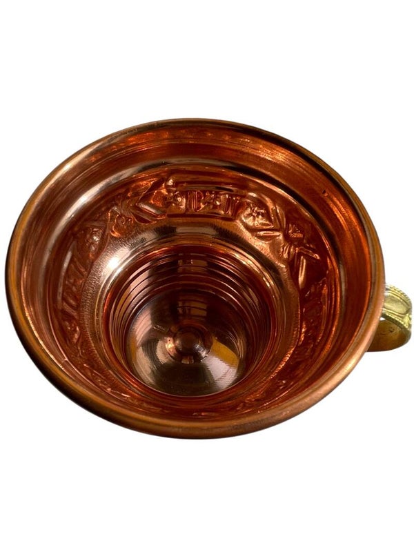 Invitez l’authenticité du Maroc dans vos instants de partage avec ce verre berbère artisanal fait main en cuivre. Son reflet cuivré, sublimé par une anse finement ciselée, évoque les objets précieux des salons de thé marocains et les lumières chaudes du Maghreb.