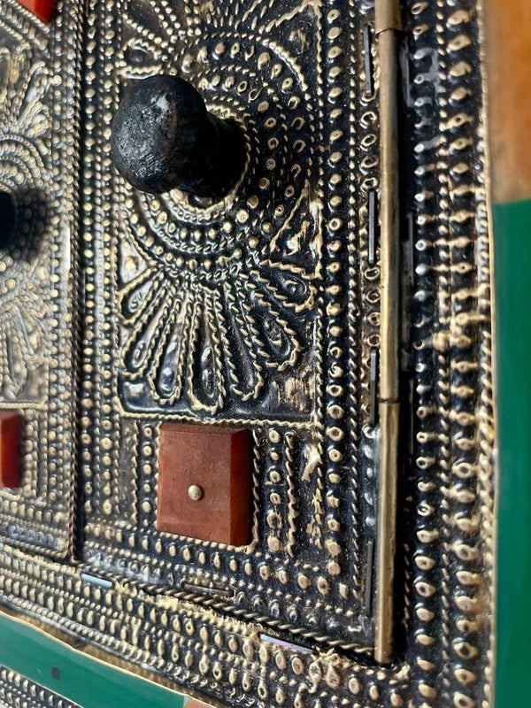 Ses volets ouvrants, finement ciselés, rappellent les portes des kasbahs accrochées aux flancs des vallées, là où la lumière du soleil couchant se mêle aux ombres des reliefs.